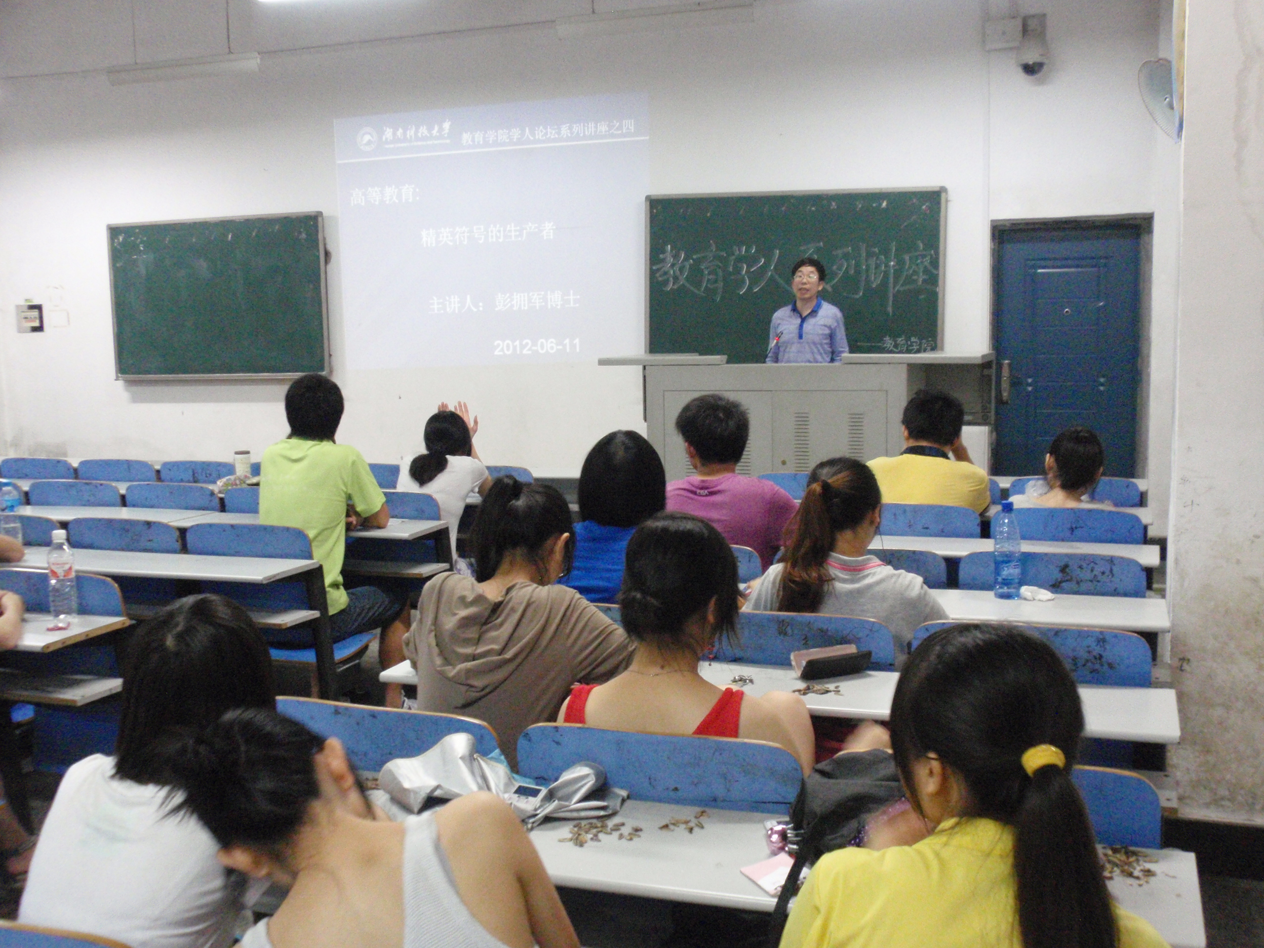 6月11日晚上7点半,永利3044集团官网“学人”论坛第四场讲座在八教1-2室举办。公司彭拥军博士受邀主讲了主题为《高等教育:精英符号的生产者》的讲座。10、11级研究生及部分本科生参加了此次讲座。