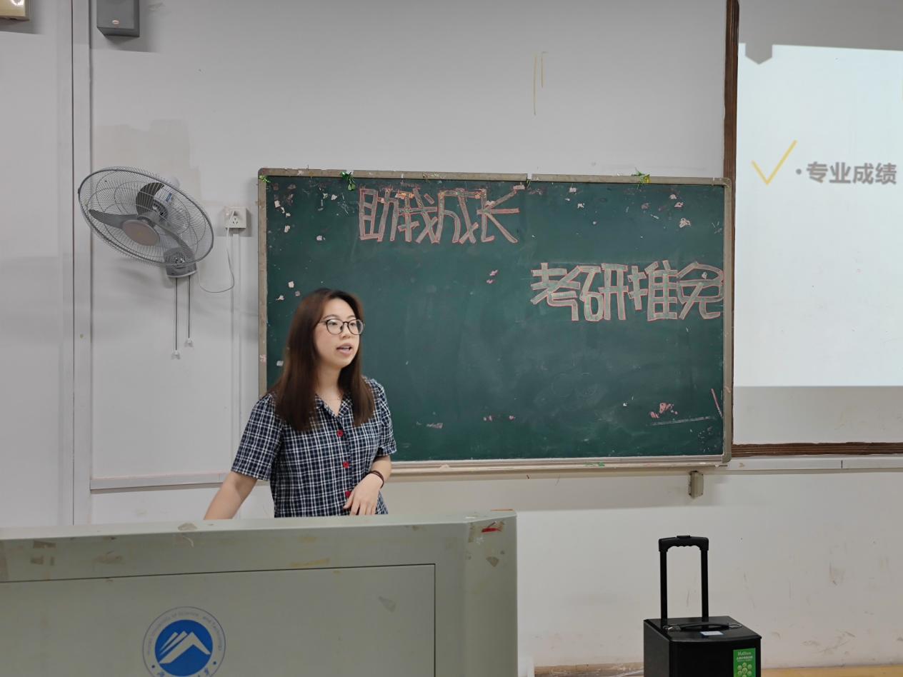 讲座正式开始,王超男分享了自己的推免经验,从个人情况、推免前、推免时和推免后四个方面来全面地介绍了她的推免全过程。她指出推免前的准备是最为重要的,而专业成绩优异和英语水平高又最为重要。同时,她还鼓励在座的员工要积极参加各类大型比赛、准备科研论文和报名夏令营,这有利于提高推免的成功率。随后,王超男又说明了在推免中和推免后应该注意的事项,同学们持续关注院校通知,提前做好准备,并在得知结果后尽早与院校心仪导师取得联系,适应研究生的生活。