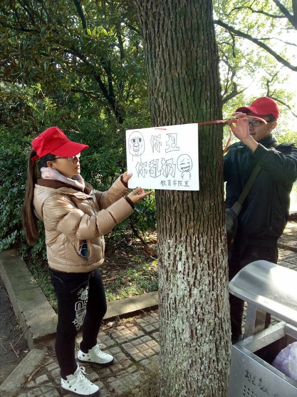 2016年11月26日永利3044集团官网青年志愿团第二和第五中队开展了挂标牌志愿活动。在活动之前,各队就在积极筹备制作标牌的活动。每位制作标牌的志愿者都在标牌创作上增添了新意,所选标语活泼生动,所绘画面形象且富有影响力。这些创意无限的标牌为志愿活动的进行增添了亮点。