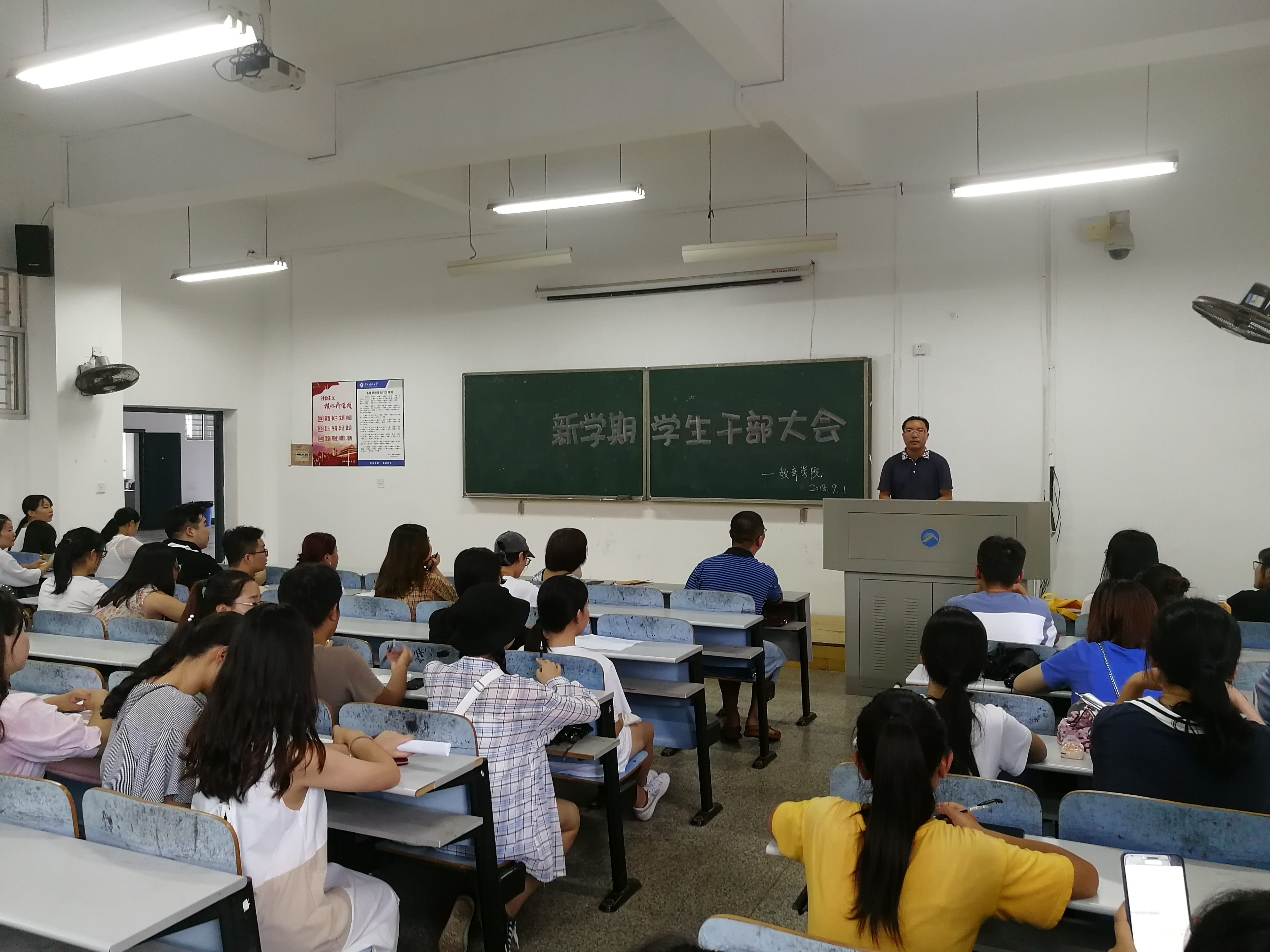2018年9月1日17:30,永利3044集团官网新学期员工干部大会在第八教学楼3-6顺利召开,出席本次大会的嘉宾有公司党委副书记刘辉亚,学工办主任李涛老师,辅导员练素华老师及第二十届团委员工会全体成员。