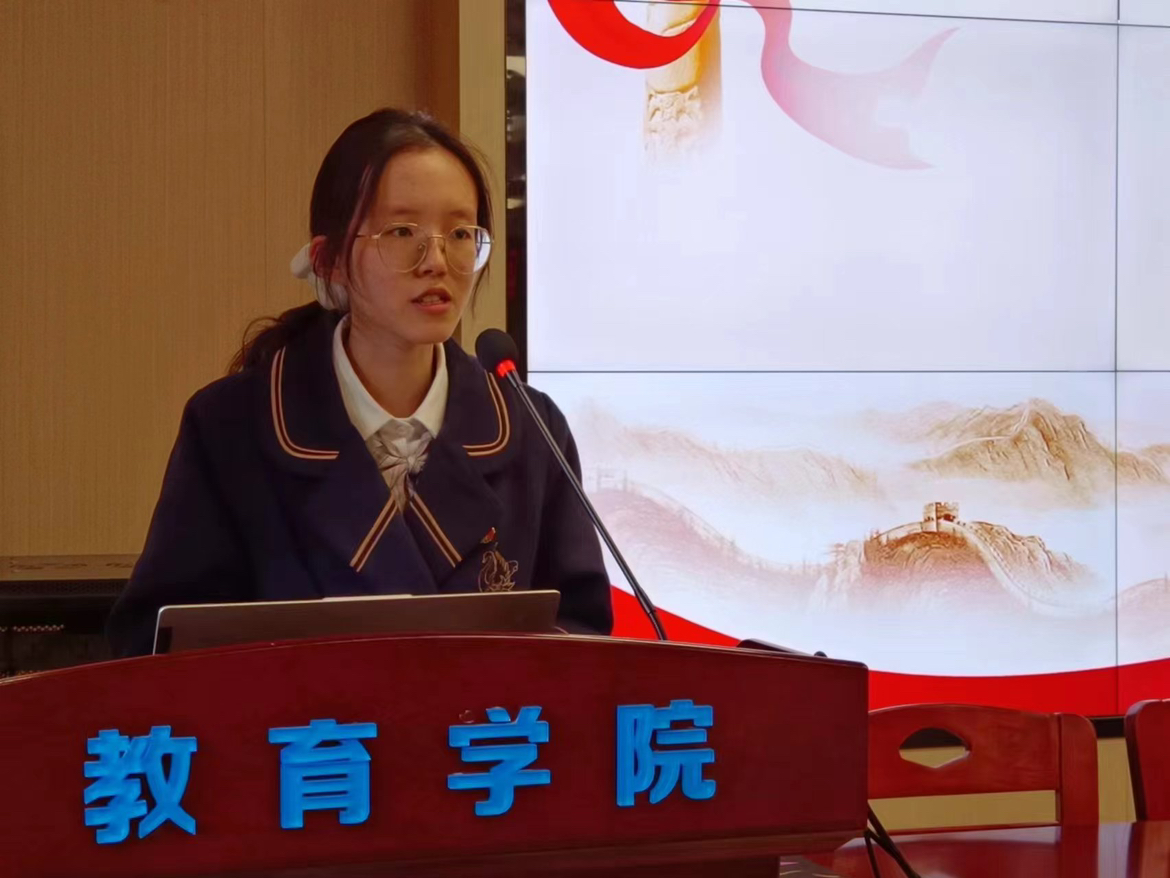 翟湘楠宣读《团章》中团员的权利与义务的条目。新团员代表黄泽田发言。她表示,共青团是中国青年的先进组织,是中国共产党的有力助手和后备军。她承诺将以更高的标准要求自己,不断奋斗,争做榜样,积极投身于共产主义事业。“祖国在日益发展,社会在日益进步,在这竞争激烈的新世纪里,作为接班人的我们更应当了解自己所肩负的重大职责,用我们的热血描绘明天完美的蓝图,用我们的青春谱写一篇篇绚丽的篇章,让共青团成为我们最骄傲无悔的身份!”她说道。