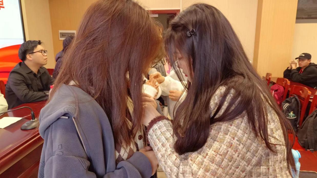 为新团员佩戴团徽