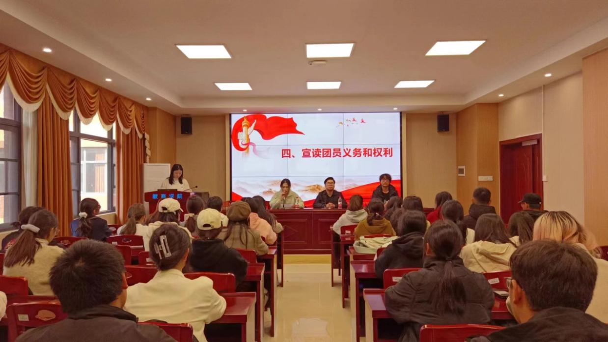 为进一步加强共产主义青年团组织队伍建设,增强团员的组织荣誉感,凝聚团组织活力,激励团员奋发向上、顽强拼搏。11月27日,2023-2024学年新发展团员入团仪式在敏行楼A333顺利举行。永利3044集团官网团委书记欧树宏、团委第一副书记王鑫阳、团委第二副书记翟湘楠、组织部全体成员、部分老团员以及全体新团员参加本次仪式。仪式由永利3044集团官网团委组织部承办,组织部部长童璐主持。