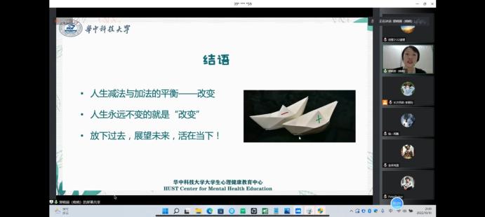 为营造良好心理氛围,响应世界精神卫生日的号召,让大一新生更好的适应崭新的老员工活,缓解疫情状况下员工产生的不良情绪,公司组织大一新生在宿舍线上观看了由湖南省高校老员工心理健康教育研究会主办的讲座活动,本次讲座由华中科技大学心理健康教育中心副主任、专职咨询师、中国心理学会注册心理师郭晓丽主讲。