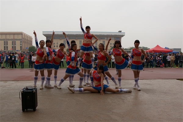 女生部为准备这段啦啦操已经连续训练了二十多天,由于都是零舞蹈基础,她们牺牲了很多休息时间,很努力地排练着,纠动作,抠细节,过程虽然枯燥艰辛,但是为了在运动会上能够让观众们更加热情地为运动员们加油,为了将激情与热情带给运动健儿们,让他们赛出更好的成绩,她们始终坚持着。