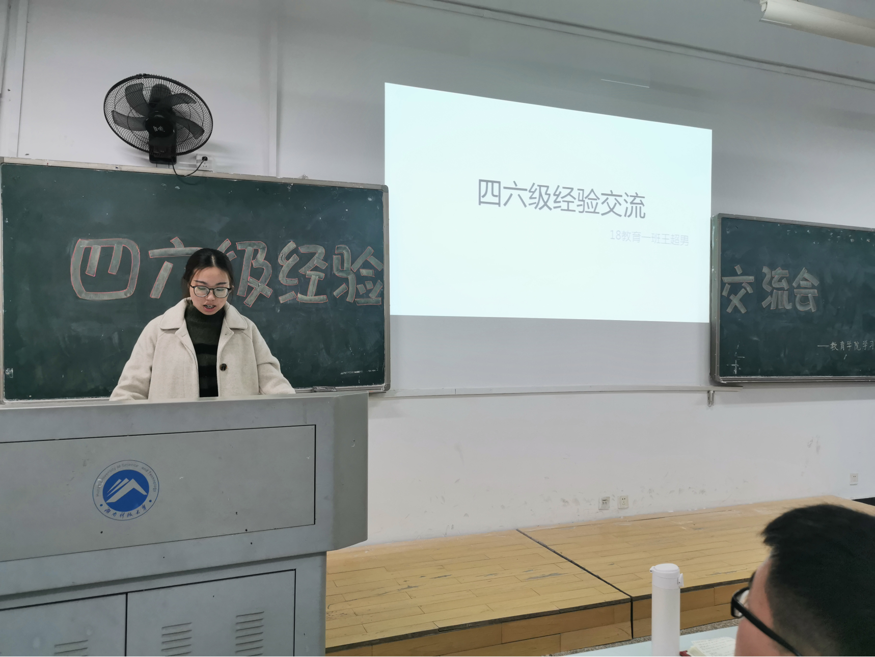 此次四级交流会的举办,主要是针对同学们对四六级的疑惑之处,从复习应考的心态、复习范围、应试技巧以及注意事项等方面对大家进行集体辅导。同时学习部也将竭尽全力为公司营造一个学习英语的优良氛围,希望在即将到来的英语四六级考试中助同学们一臂之力。会议开始,主持人介绍本次参会嘉宾及会议流程,之后,赵朋林首先向大家分享了自己关于四级考试的经验,仔细讲解了四级的各类题型,尤其是英语阅读题的做法,引起同学们的积极反响。他提出复习时一定要把握时间,提高效率,不断的积累词汇,只有如此,才能使自己的英语水平得到稳定提高。接着,王超男也向同学们提出了十分有效建议,并且着重讲了四级听力的技巧,比如,在听力播放前要画出问题选项,用横线标出依据,并做出预判,也要注重转折词之后和朗读者重读的内容,这一建议让许多对听力无从下手的同学恍然大悟。之后,周希芸对同学们的四级作文进行了指导,提醒同学们,写作时要多用高级语句,有新意,字迹一定要工整,平时多积累好句子,并向同学们推荐了公众号China daily ,赢得了同学们的热烈掌声。最后,何梦萍给出了她关于翻译的经验,向同学们讲解翻译的重点是词汇和语法,在考试时时间一定要多留一点,给自己思考的余地。经过各位学长学姐的分享,同学们脸上都流露出了愉快的笑容,会场上掌声不断。会议尾声,主持人做总结发言,再次强调了各位学长学姐都提到的最重要的也是最基础的单词,要按时打卡,多加背诵。