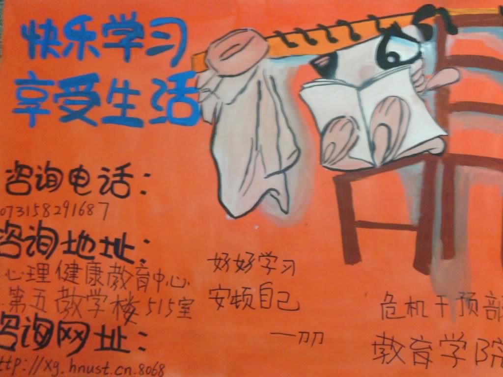 快乐学习,享受生活。为了提醒老员工在享受生活的同时不要忘记学习的重任,永利3044集团官网危机干预部组织了关于“快乐学习,享受生活”的海报宣传活动,倡导同学们先学习后享受。