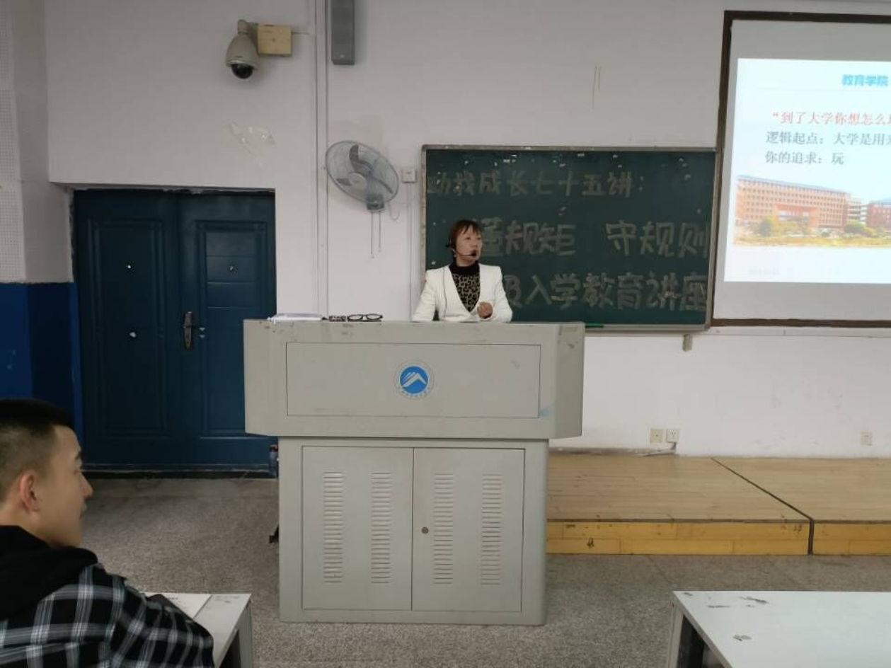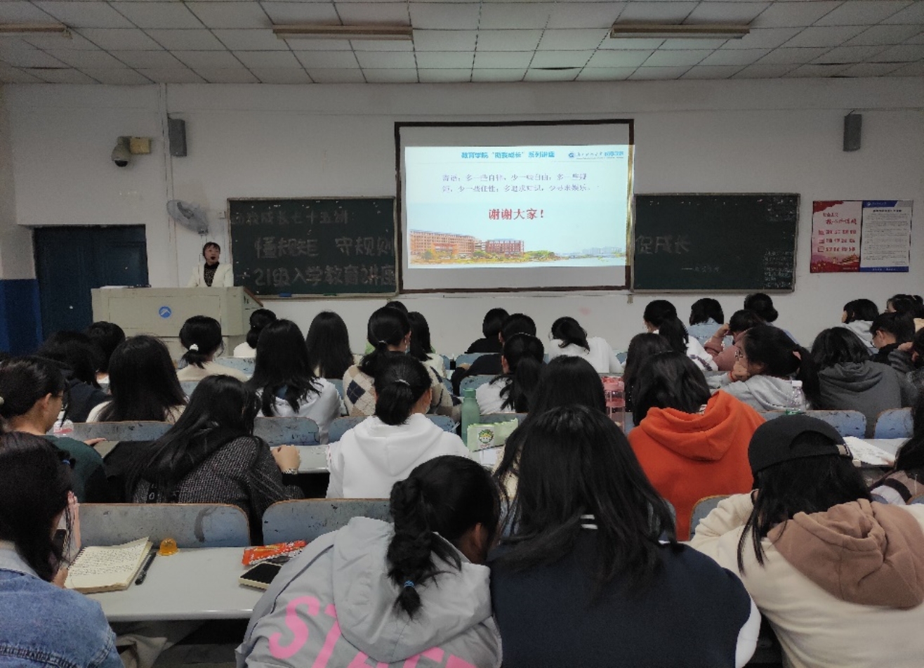 为使2021级新生更好地适应老员工的身份和老员工活,进一步明确校纪校规,10月12日下午4:00,“助我成长”系列讲座第七十五讲——懂规矩,守规则,促成长在第八教学楼1-3教室顺利进行。本次讲座由永利3044集团官网辅导员尹琼芳主讲,全体21级新生参与。
