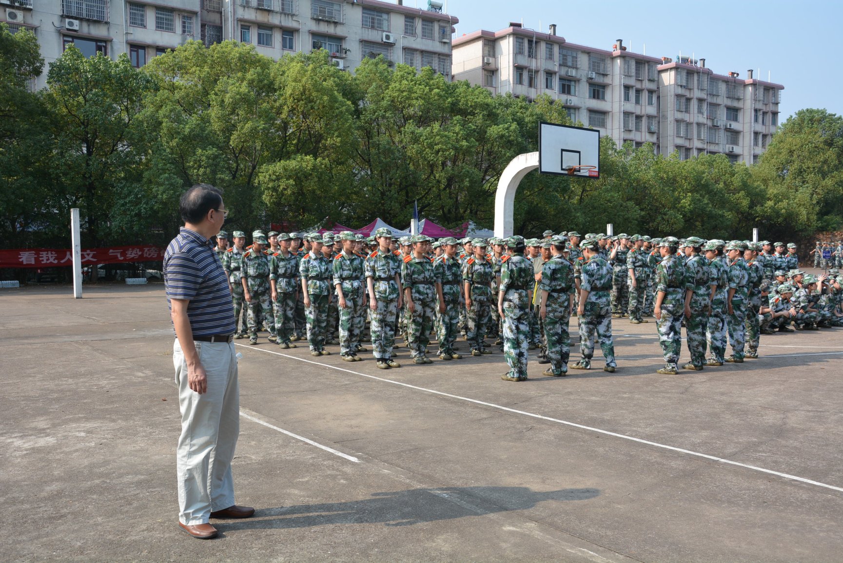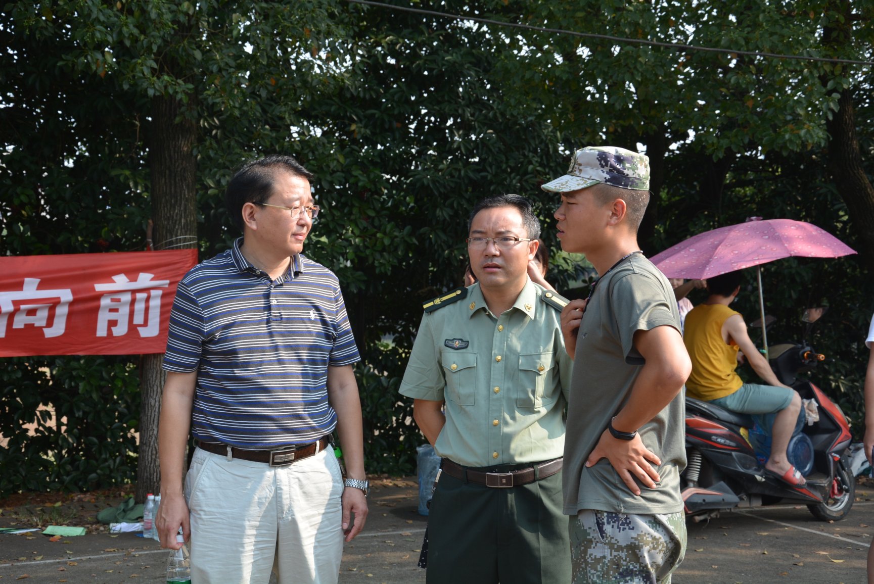 公司领导看望军训中的新生