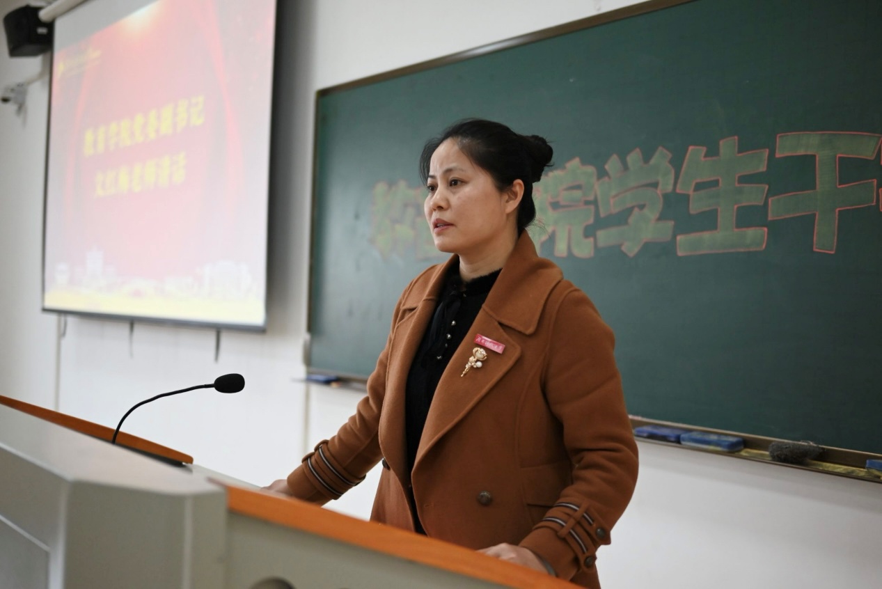 文红梅总结了员工干部在工作中的挑战与不足,她提出四点建议:加强学习,提高思想觉悟;密切联系同学,了解需求;注重团队协作,形成合力;勇于担当,敢于创新。
