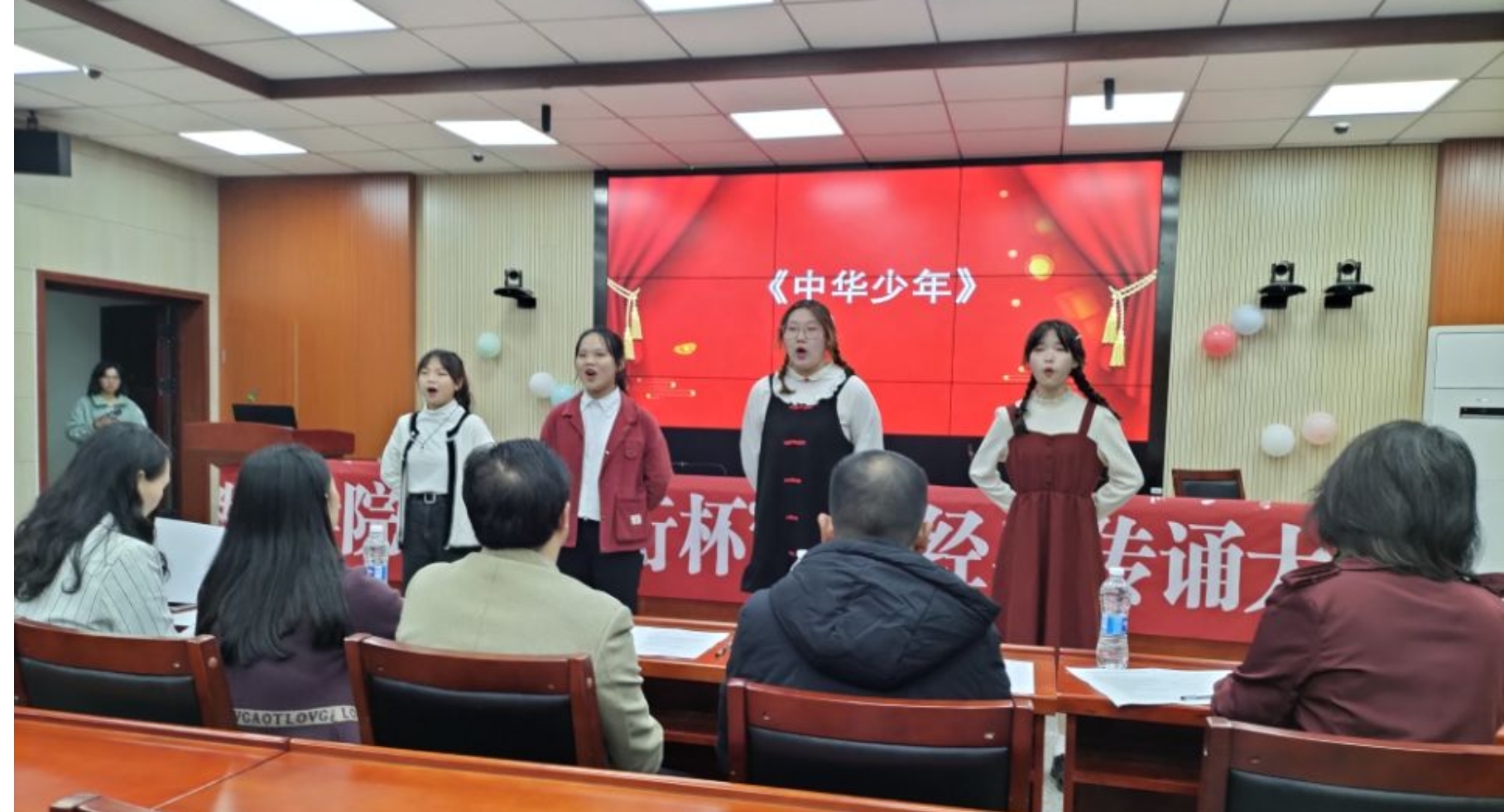 本次比赛在选手和评委老师的合影中欢快结束。相信通过此次比赛能够带动更多的同学参与到中华经典诵读中来,激发同学们对传统文化的热爱,主动传承优秀文化,同时也促进自身语言表达能力的提升。期待下一届比赛同学们有更精彩的表现。