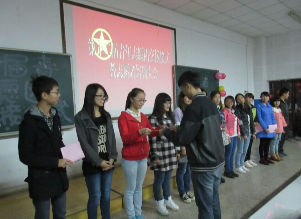 第十二届青年志愿团交接仪式暨培训大会在2014年11月14日晚18:40于八教3-3应时启幕,永利3044集团官网团委第一副书记汤思维,第十一届青年志愿团副团长孙生,第十二届青年志愿团团长付少淼及青年志愿团主要干部出席本次大会,一百余位新志愿者及邀场嘉宾团坐着,以共同的身份和语言诠释着新的内涵,连同未来方向。