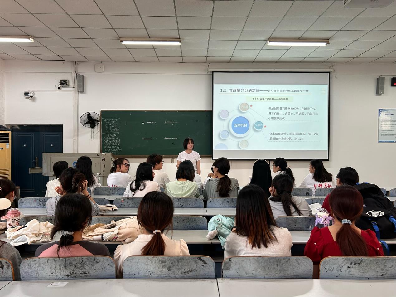 为顺利开展2024级新生心理健康工作,更好地发挥养成辅导员的作用, 9月3日下午,养成辅导员心理工作体系与指导培训在第八教学楼201教室举行。本次培训由辅导员练素华主讲,全体养成辅导员到场参加。