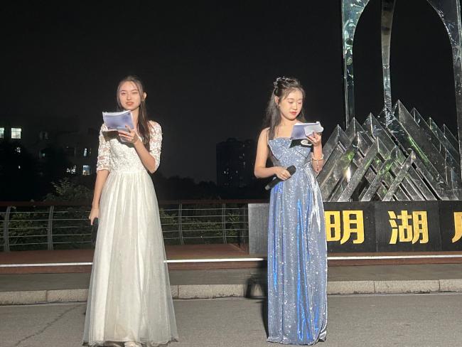 明湖广场,缤纷的镁光灯照亮会场,一曲开场舞《Unforgiven》点燃全场气氛,拉开了晚会序幕。声乐表演《唱给你听》、小品《大一入学指南》、器乐表演《月半小夜曲》、歌曲《你曾是少年》等节目激情奉献,精彩不断,婉转悠扬的歌声荡漾在整个会场,荧光棒随着歌声起舞,现场观众一起共享音乐盛宴。