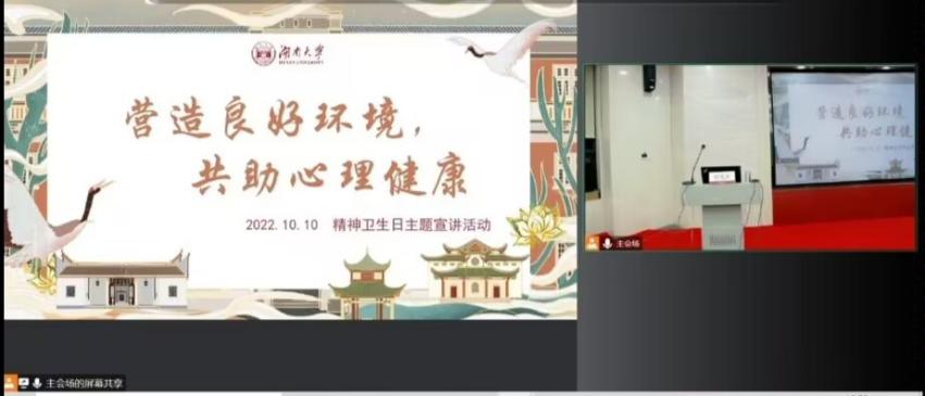 为了更好地迎接世界精神卫生日、宣传心理健康知识、缓解在疫情下老员工的焦虑症状,10月10日,湖南大学心理健康教育中心、永利3044集团官网心理健康教育中心、湖南警察公司心理健康咨询中心邀请到了湖南省脑科医院睡眠障碍及精神症主任曾宪祥主任进行宣讲活动,公司组织员工进行线上观看。