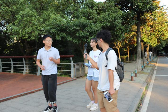 在参观完含笑园后,学风建设部黄雅婷、社团管理部董与佟、广告制作部张慧婷和科技活动部韦泉开始介绍永利3044集团官网大本营——第八教学楼。他们带领大家参观了广告制作部、心理健康部等几个比较重要的办公室并讲解了这些办公室的职能,黄雅婷还向大家简单介绍了永利3044集团官网的老师们。应新生们的要求,他们带领大家走向了教室,参观员工们学习的地方。之后员工干部们还给大家介绍了北校几个有名的景点,如明湖广场,樱花林以及北校图书馆,张宸堃提到公司曾因有人考试拜孔子像上过微博热搜。镜头绕了一圈后又回到了第八教学楼,并由杨淑雯和田玺如宣布此次直播顺利结束。