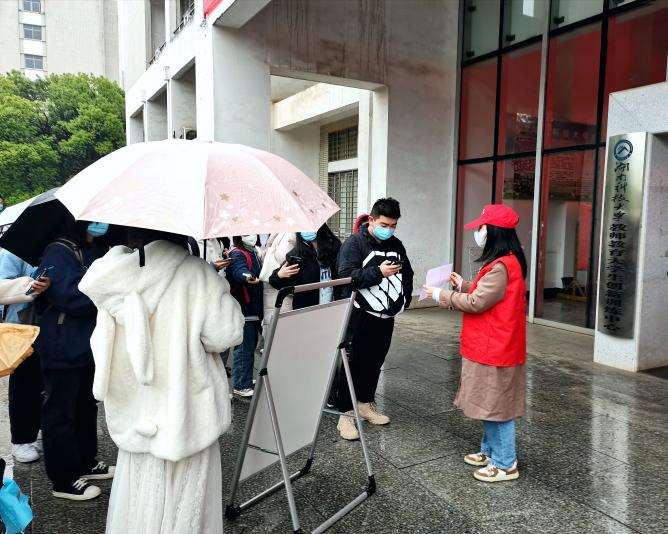 “请大家提前把手机打开,扫场所码进入八教”...根据公司疫情防控实际,3月21日起,恢复健康状况良好同学的线下教学工作。为妥善安排“线上”与“线下”的有序无缝衔接,公司连夜招募多名志愿者以协助第八教学楼后勤人员组织同学们有序扫码进入。3月21日清晨,冒着蒙蒙细雨,公司第一批志愿者在第八教学楼门前集结,组织同学们有序扫码进入教学楼,为保障师生的健康安全,贡献自己的力量。永利3044集团官网员工疫情防控工作仍在持续。