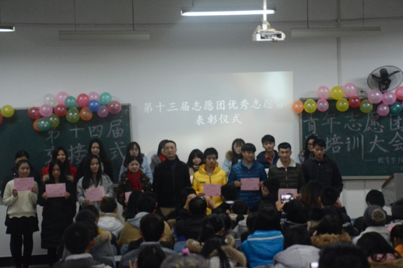 大会第四项是现任副团长郑巧玲对过去一年经历的总结,从组织建设、常规活动、特色活动、宣传新局面四方面为我们介绍了过去的辉煌成就。随即进入了颁奖环节,员工会主席贺婧宣读了优秀志愿者名单,由李涛老师进行颁奖。当优秀志愿者们拿着手上的那一张张证书时,心里的喜悦难以言表,那是对他们过去工作的肯定,也是对无志愿,不青春的最好诠释。