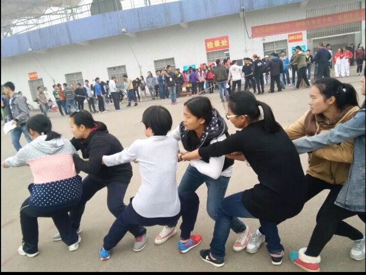 比赛还没开始时,双方队员即进入战斗状态,双手紧握麻绳,双脚用力蹬地,身体微向后倾,参赛队员齐心协力凝成了一股绳!哨声一响,口号震天,气势轩昂。永利3044集团官网的拔河队员们奋力拼搏,脸憋得通红丝毫不放松。女生们更是不甘示弱,一个个咬紧牙关,将巾帼不让须眉的精神风貌挥洒的淋漓尽致。场外的拉拉队也不甘示弱,加油声,呐喊声,助威声,直入云霄。
