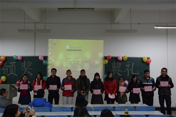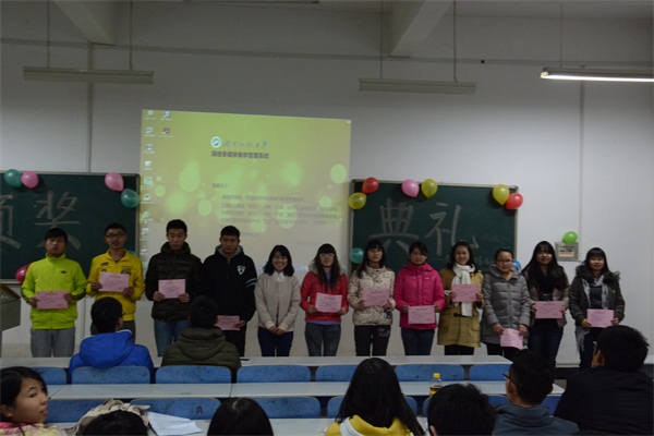 2014年12月17日晚19:00,由公司体育活动部组织的“迎新杯”暨“校运会颁奖典礼”于八教2-1举行。出席本次活动的嘉宾有学工办主任李涛老师、 辅导员滕茜茜老师,第十六届团委员工会主席吴厚涛,副主席黄培根。