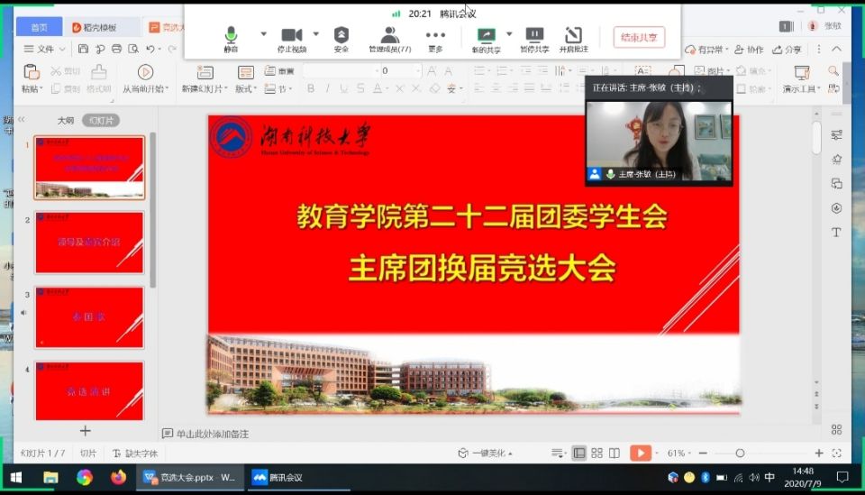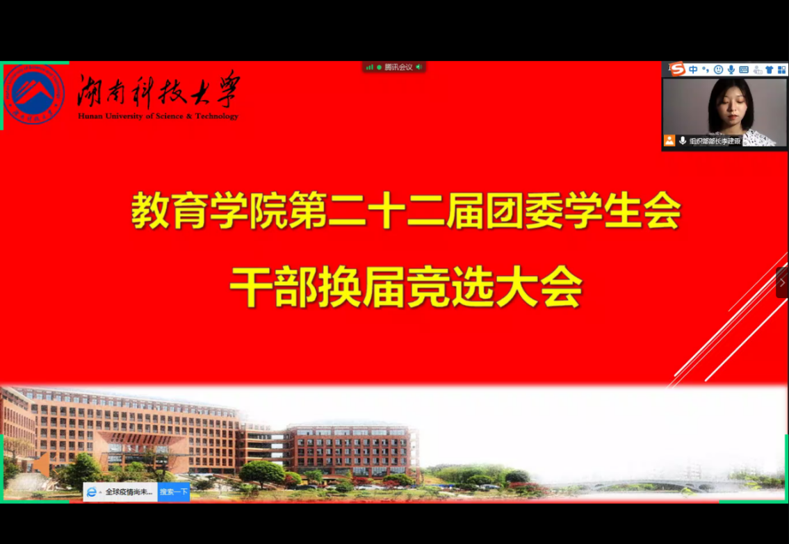 岁序常易,华章日新,为加强员工会人才队伍建设,永利3044集团官网第二十二届团委员工会主席团、干部换届竞选大会分别于2020年7月9日、7月20日在腾讯会议召开。永利3044集团官网各领导老师出席会议,员工会各部门代表和17、18、19级员工代表参加会议。