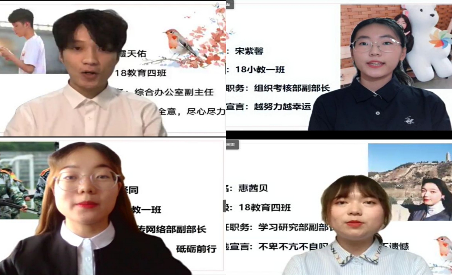 奏唱庄严肃穆的国歌后,相应会场的负责老师宣读投票原则,竞选大会正式开始。宿舍管理部、员工资源部、勤工助学部、文艺活动部、广告制作部等部门的竞选人依次开展竞选演讲,他们用最佳的精神面貌与朝气蓬勃的激情进行个人经历和自身优势的介绍并阐述自己的工作经历,以及对部门的工作设想。他们牢记大一进入部门的初心,相信自己有足够的自信与能力把部门的工作做得更好更出色。经过三轮投票,新一届团委员工会各部门副部长完成竞选。
