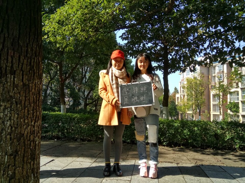 何止如此,那里还有一道靓丽的风景线!正当志愿者们对一位学姐说明此次活动是为考研的学姐、学长送祝福的时候,她笑了,笑容是那么的灿烂,仔细的看了看小组的几位志愿者,停顿了几秒然后说:“其实我就是一名即将要考研的学姐”“哇,努力了总会有收获,相信学姐一定会考研成功!那你愿意写下对你自己以及众多和你一样在考研路上奋力拼搏的同伴的祝福吗?”志愿者笑着回答道。“当然愿意啊,希望大家都如偿所愿!”她边说边在小黑板上写下“考研成功”四个大字!接着志愿者小伙伴与学姐互相表达了谢意,学姐满面笑容地离开了!望着她远去的背影,志愿者们的心中也不断坚定着这个信念:2017年,考研必胜!