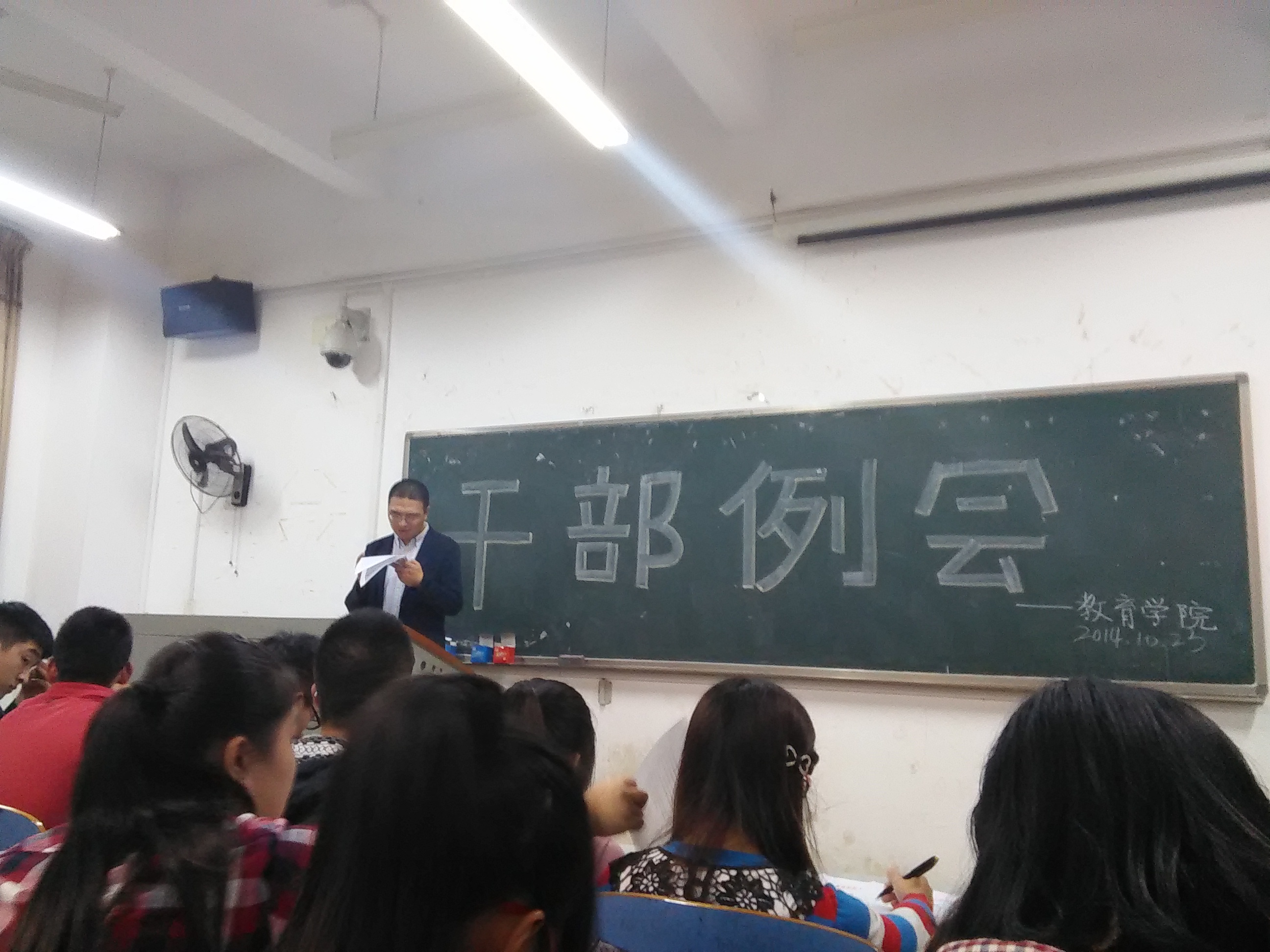 您所在的位置: 首页» 员工工作 干部例会 时间:2014-10-23 00:00:00 中国·3044永利集团(集团)有限公司-官方网站 2014年10月23日17:50,永利3044集团官网全体员工干部于八教105召开了干部例会。学工办主任李涛老师向员工干部传达了公司会议精神,着重强调了公司日常管理、违纪处分、教学礼拜周等工作事项。