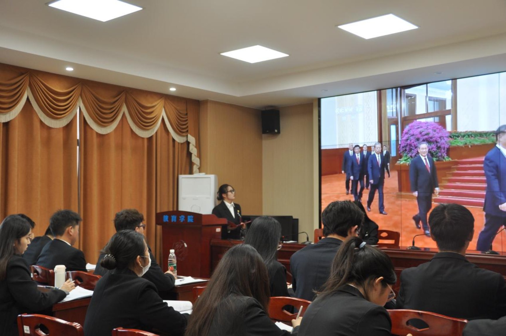 ▲各代表观看相关视频并深入学习文件