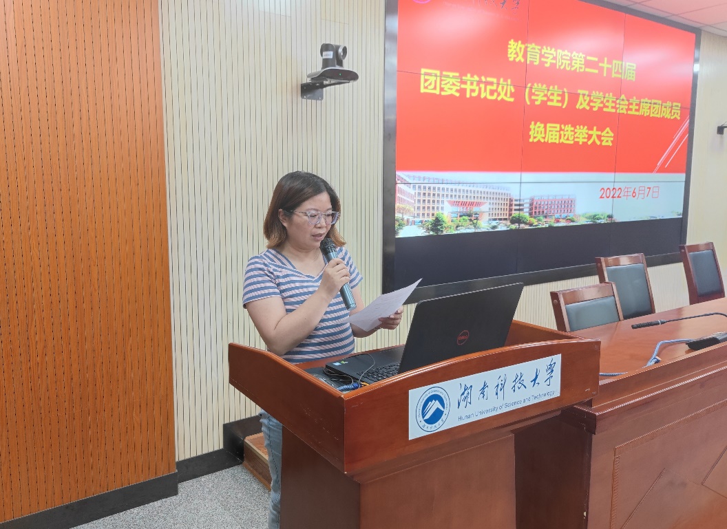 6月7日下午16:30,永利3044集团官网第二十四届团委书记处(员工)及员工会主席团成员换届选举大会于第八教学楼308顺利开展。党委副书记刘婕、学工办主任罗江林、团委书记练素华、辅导员胡银华、兼职辅导员包尚飞出席,永利3044集团官网员工代表及候选人参与此次会议,本次大会由第二十三届员工会执行主席杨淑雯主持。