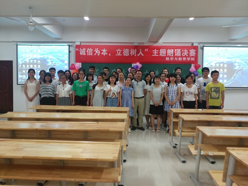 6月9日晚7:30,永利3044集团官网及数学与计算科学公司一起于理科楼A101举办了“诚信为本,立德树人”主题朗诵决赛。