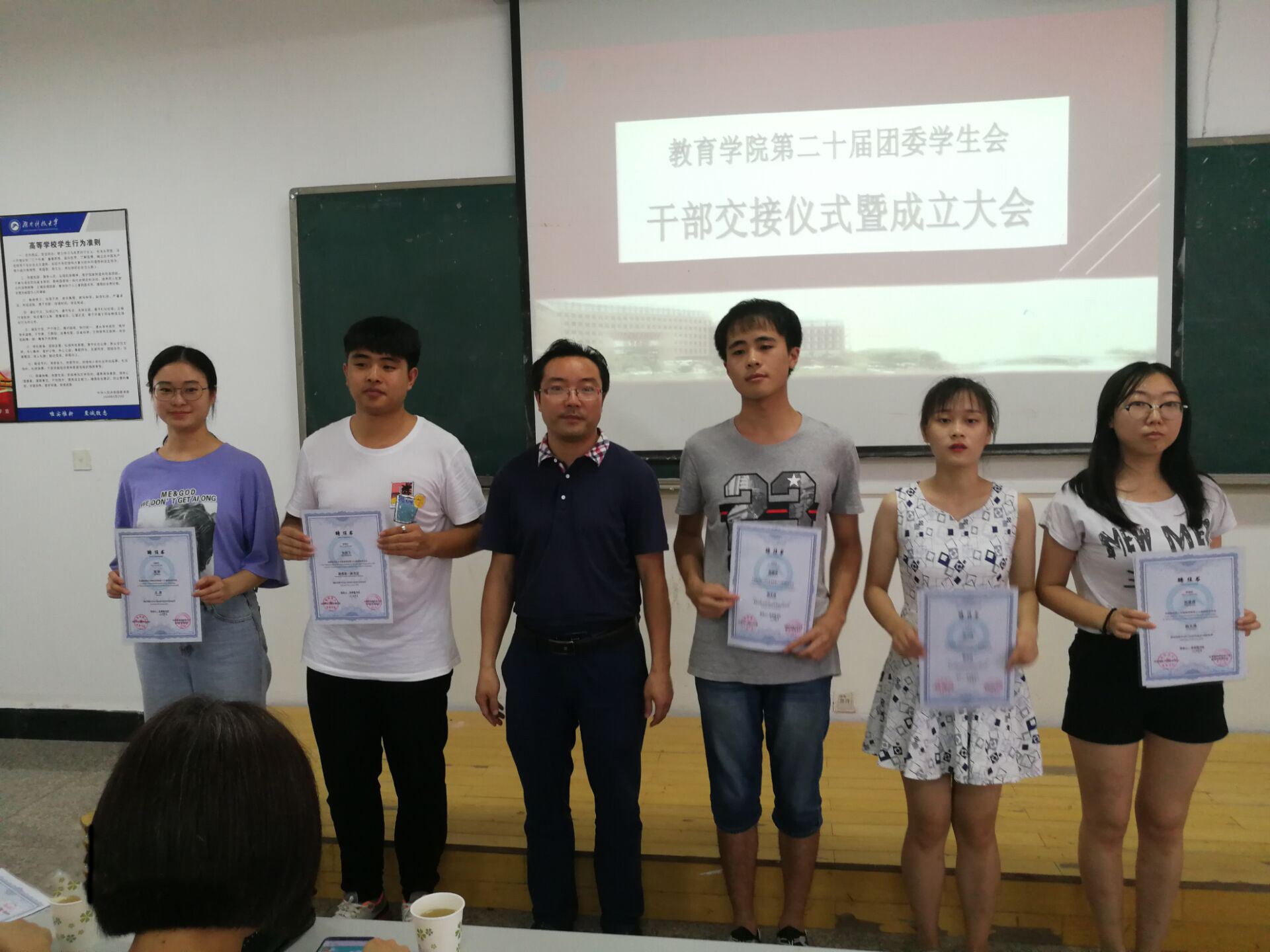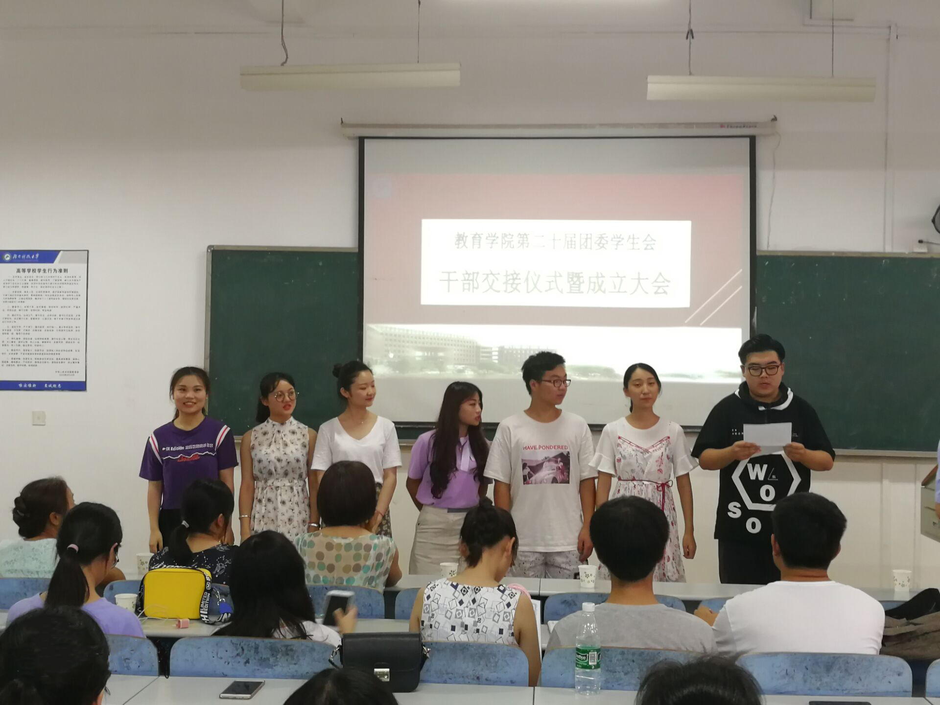 2018年6月22日16:30,永利3044集团官网第十九届、二十届团委员工会干部交接仪式暨第二十届团委员工会成立大会在第八教学楼3-6正式举行,到场的嘉宾有公司党委副书记刘辉亚,学工办主任李涛,团委书记练素华老师,辅导员胡银华老师和尹琼芳老师,第十九、二十届团委全体员工会干部参与本次会议。