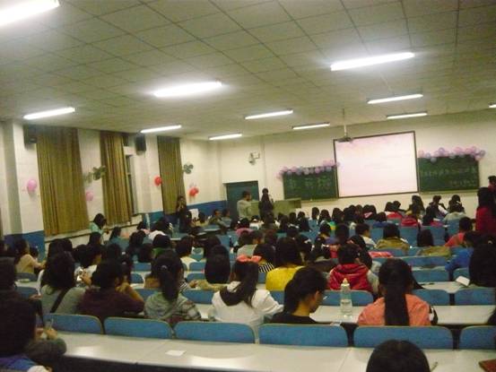 11级新生郑晓露一曲优美的傣族舞蹈则正式拉开了讲座的帷幕。首先,蒋女士强调”世上没有丑女人,只有懒女人。”她表示,美容美体不仅能使自己变美丽;更是对他人的一种尊重。同时,她向员工分别讲述了皮肤的五种类型以及相关美容知识,让大家收获良多。