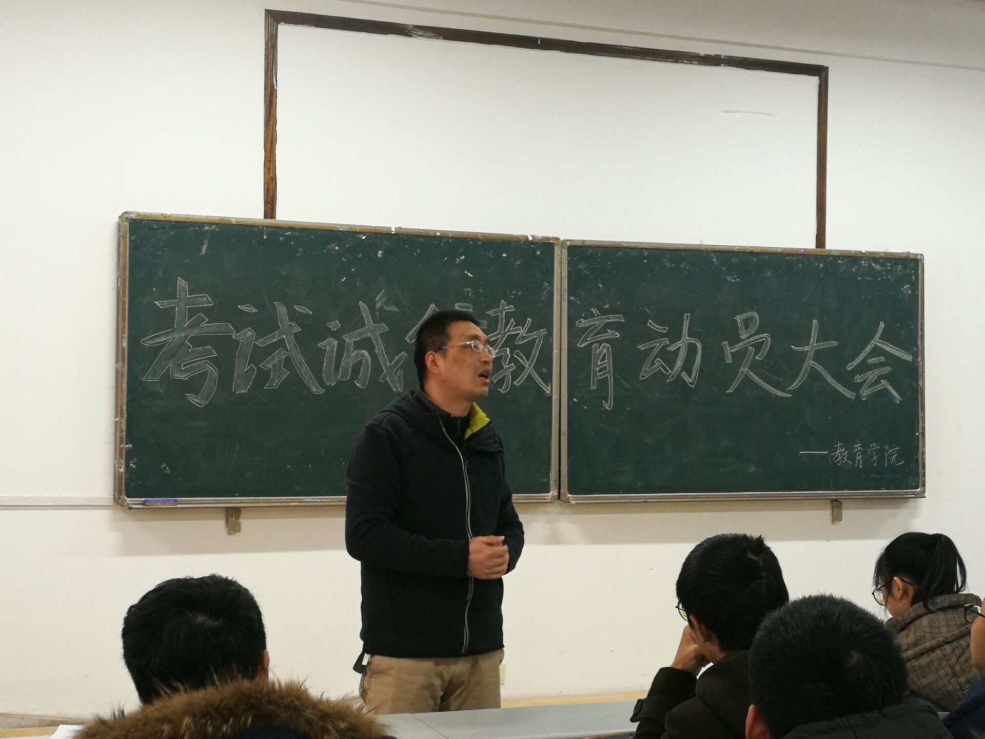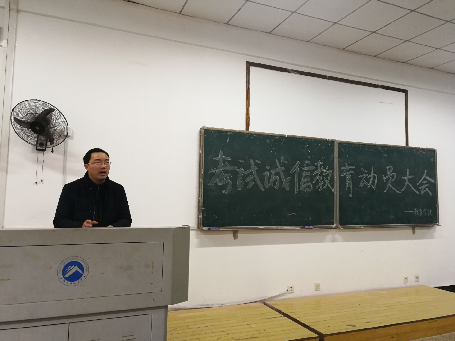 会上,刘辉亚对本学期几次重大考试以及期末考试提出了要求,要求同学们诚信参考,调整心态,充分做好考试准备,树立诚实守信的观念,确保教学工作的顺利进行。同时也从考试作弊所产生的严重后果来阐明诚信考试的重要性,追求诚信考试是一种公平,更是一种对自身对知识的尊重。刘辉亚提出如有什么困惑问题,可以随时咨询,为同学们排忧解难,表达了对同学们的关心,也预祝同学们顺利通过考试。