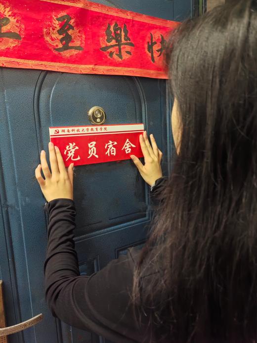 文红梅强调一名党员就是一面旗帜,一间宿舍就是一座堡垒。挂牌意味着亮明身份,党员宿舍意味着标杆。她殷切嘱托广老员工党员要发挥先锋模范作用,在学风建设、宿舍文明、志愿服务中主动担当,激励其投身宿舍文化建设,增强党员的责任意识和服务意识,进一步强化党员的身份认同。