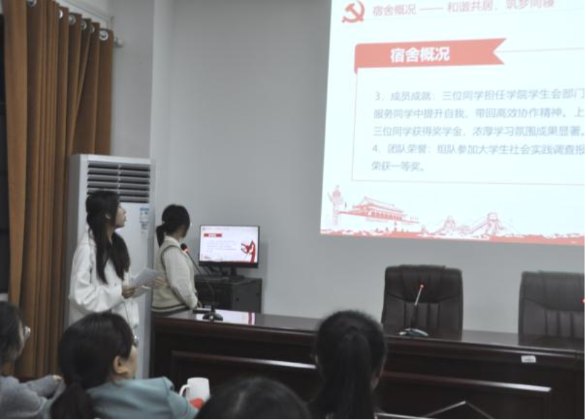 员工党员代表王晓晶、雷佳欣分享优秀宿舍文化建设心得。她们表示宿舍是第二家园,“党员宿舍”门牌时刻提醒自己牢记党员身份,将继续发扬优秀宿舍优良传统,以身作则建设好党员宿舍,由点带面促进整体精神文明建设。