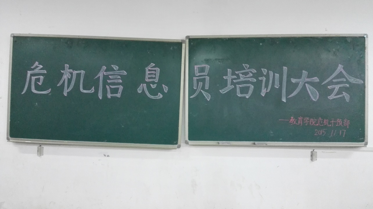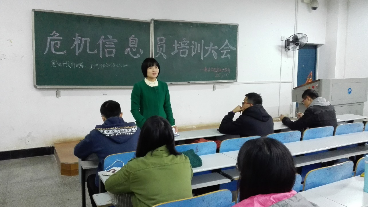 此次培训会于下午三点圆满结束,此次会议对新一届危机信息员的工作开展有着积极的作用,而对老几届的危机信息员们则是一次工作的督察。相信通过此次培训会,所有的危机信息员们都会在工作中越来越严谨,真正做到防患未然!