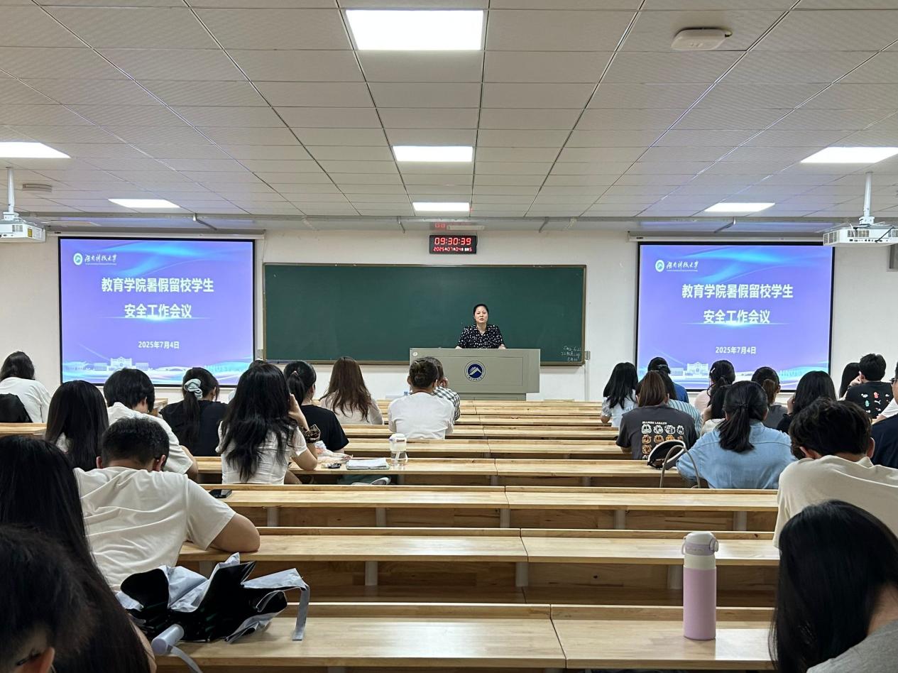 文红梅简要介绍了2025年暑期留校员工基本情况,详细介绍暑期留校员工管理及相关安排。她对假期安全工作提出五点要求:一是把好“食品安全关”,建议员工尽量在校内食堂就餐;二是守好“用电安全线”,严禁使用违规电器;三是筑牢“防诈防火墙”,警惕各类电信诈骗;四是远离“校园贷陷阱”,树立理性消费观念;五是制定“一日一报”机制,严格执行离校、返校登记制度。