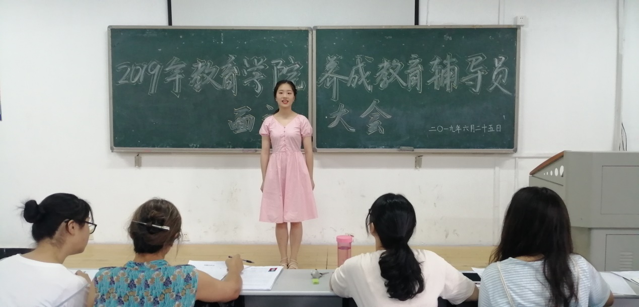 养成教育辅导员是公司员工工作及员工思想政治工作队伍的重要组成部分,是协助辅导员、班主任进行员工教育、管理、服务的重要力量,负责员工良好的学习习惯、生活习惯的养成教育。希望通过本次面试大会能够甄选出最合适的养成教育辅导员,把2019级的迎新工作做到最好!