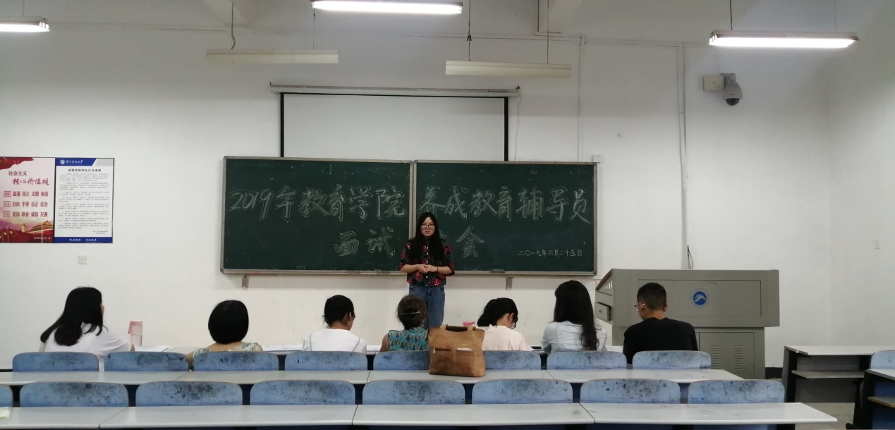 为加强人才培养,发挥典型示范作用,做好迎接2019级大一新生的工作,2019年6月25日下午2:30,永利3044集团官网养成教育辅导员面试大会于八教3-6举行。出席本次会议的嘉宾有学工办辅导老师练素华、尹琼芳以及第二十一届团委员工会主席团的全体成员。
