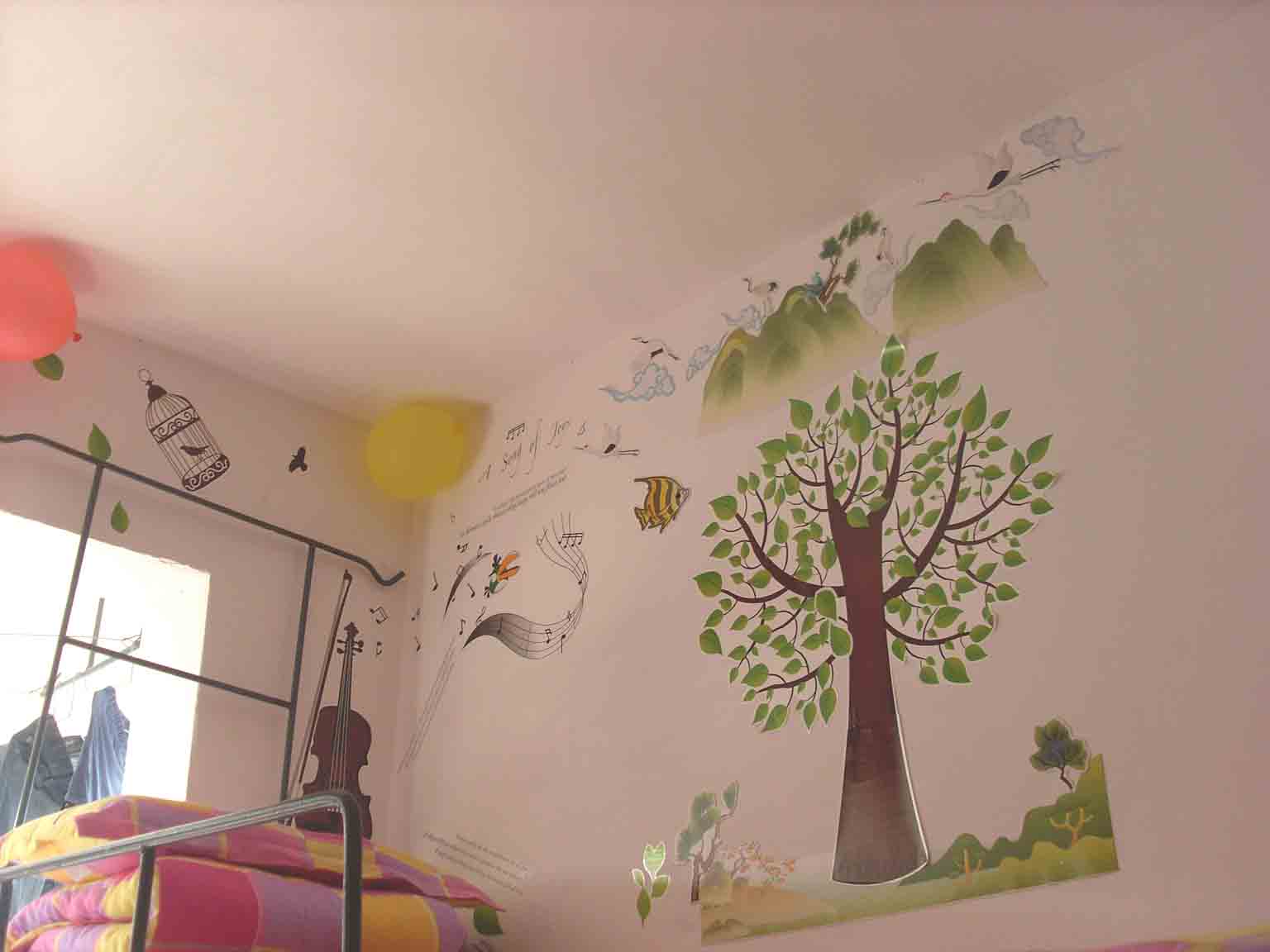 女生细腻,男生也富有情调。在七区男生宿舍中,509寝室的海报式墙纸上,各种动漫人物,众多篮球巨星等尽入眼帘;五角星的标志,以“动物森林”为设计主题的绿色背景的墙面,在409宿舍里,一种置身大自然的感觉油然而生;一进门便是整洁明净,墙壁上张贴着彰显个性的精美贴纸,门上挂着由该寝室成员自己倾心制作的千纸鹤门帘,整个寝室的设计美观大方,温馨雅致,符合了大赛的设计要求。