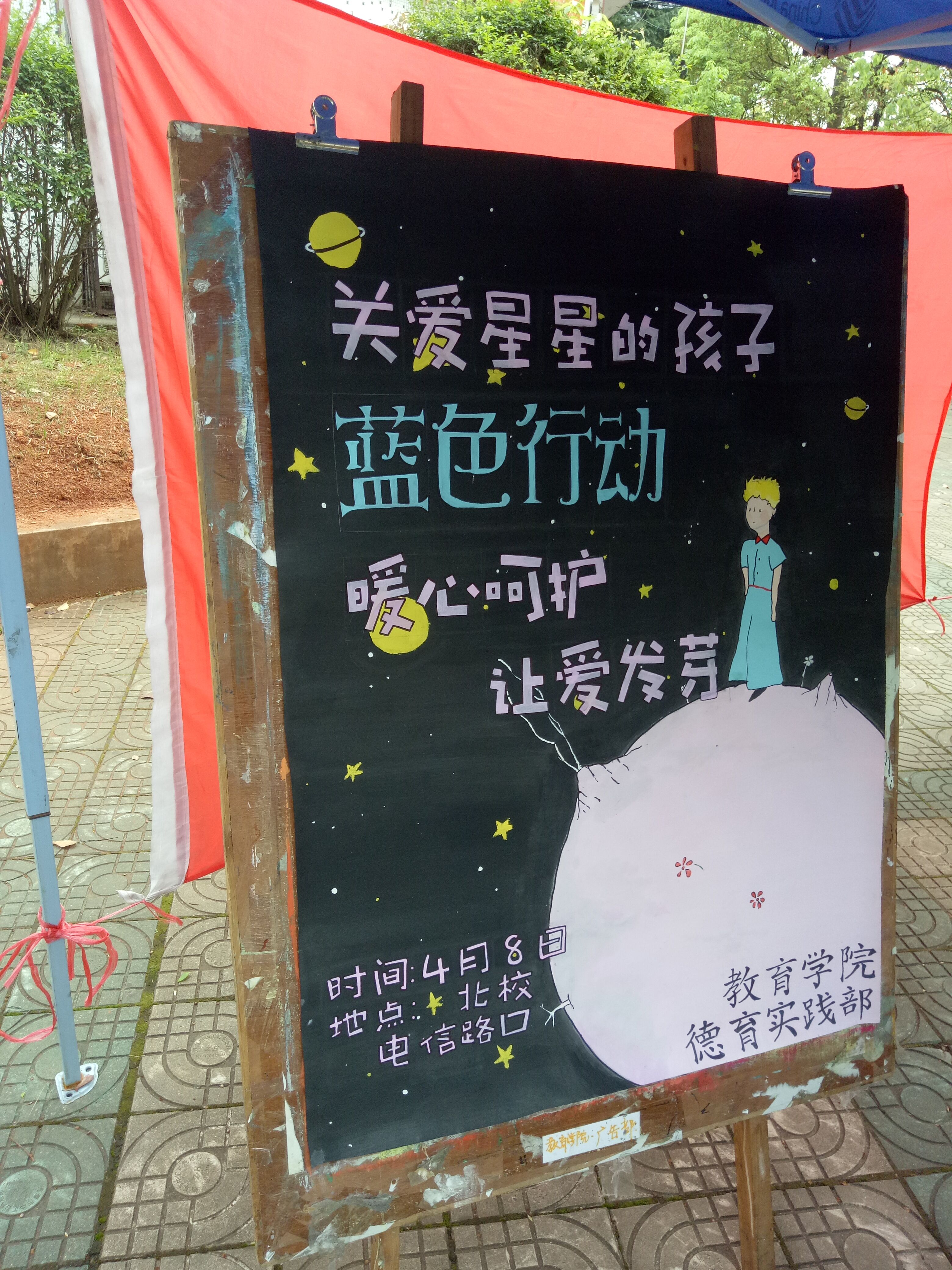 湘潭市岳塘区亲园培智公司有两名患自闭症的孩子,他们家庭情况特殊,尤其需要大众及社会的帮助。为此永利3044集团官网青年志愿团自2017年4月8日晨8:00至傍晚17:00在北校区电信路口举行了“蓝色活动”——关爱自闭症儿童宣传及募捐活动。