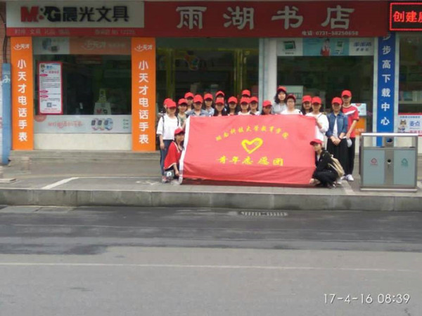 在湘潭这个一年无四季,一日有四季的小城里,很难遇到明媚的清晨。2017年4月16日8:00,天气依旧依然阴沉。伴着微微清风,志愿者们早早的在公交站集合准备踏上他们最后一次志愿活动之旅。