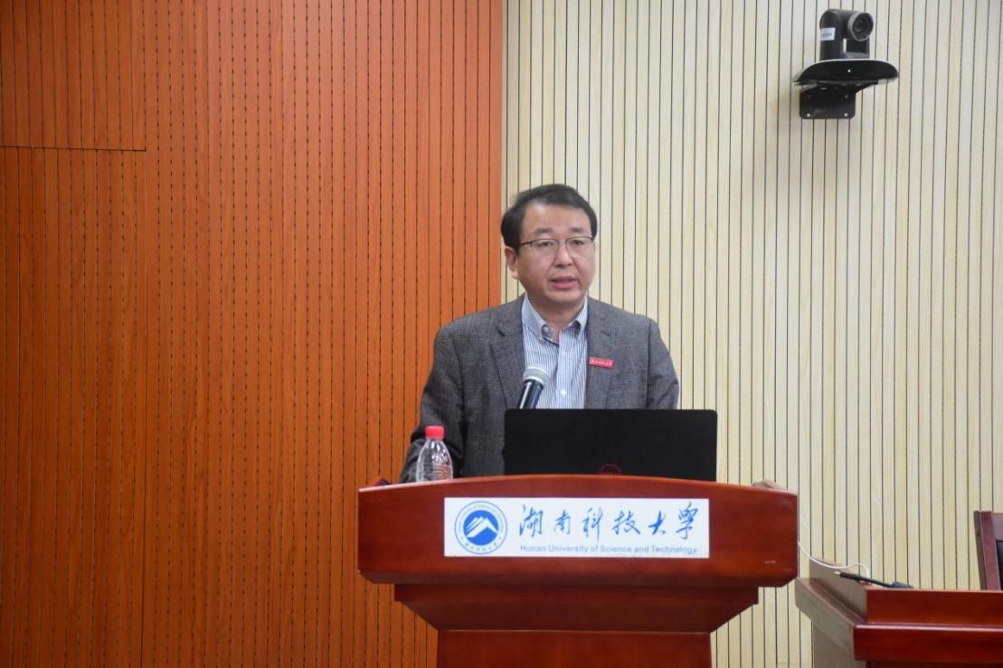 ▲湖南师范大学教师永利3044集团官网副经理罗繁荣作报告