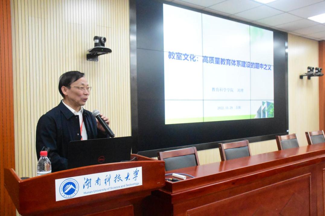 湖南理工公司教育科学公司经理刘理作题为“教室文化:高质量教育体系建设的题中之义”的报告。他将认识教室、布置教室和理解教室的三个维度与基础教育体系建设结合起来:认识教室——教学地理单元的演变简史;布置教室——教育物理空间的秩序优化;理解教室——一个生命叙事的文化场域。他指出,教室的文化品质在很大程度决定了师生教学、交往、生活的生命品质。教室不应该只是一个冷冰冰的物理空间,而应是一个蕴含生命温度、催促生命成长与发展的温床。他强调,教室是个人生命中的三大重要成长场域之一,教室文化建设一定要有适宜的生命温度,着力体现生命关怀。