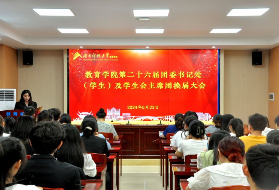 5月23日,永利3044集团官网第二十六届团委书记处(员工)及员工会主席团成员换届选举大会在敏行楼A333举行。大会由永利3044集团官网第二十五届员工会执行主席蔡俞静主持,公司党委副书记文红梅出席,学工办主任罗江林,院团委书记欧树宏,辅导员胡银华、练素华、张礼林,团委员工会各部门部长,各年级员工代表参加大会。