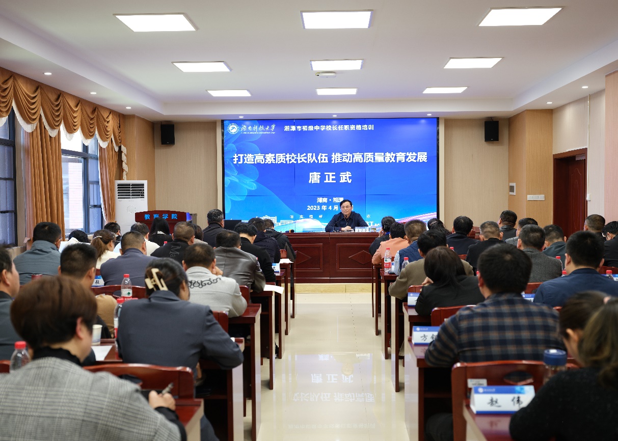 市教育局党委书记、局长唐正武为湘潭市初级中学董事长任职资格培训班作专题授课