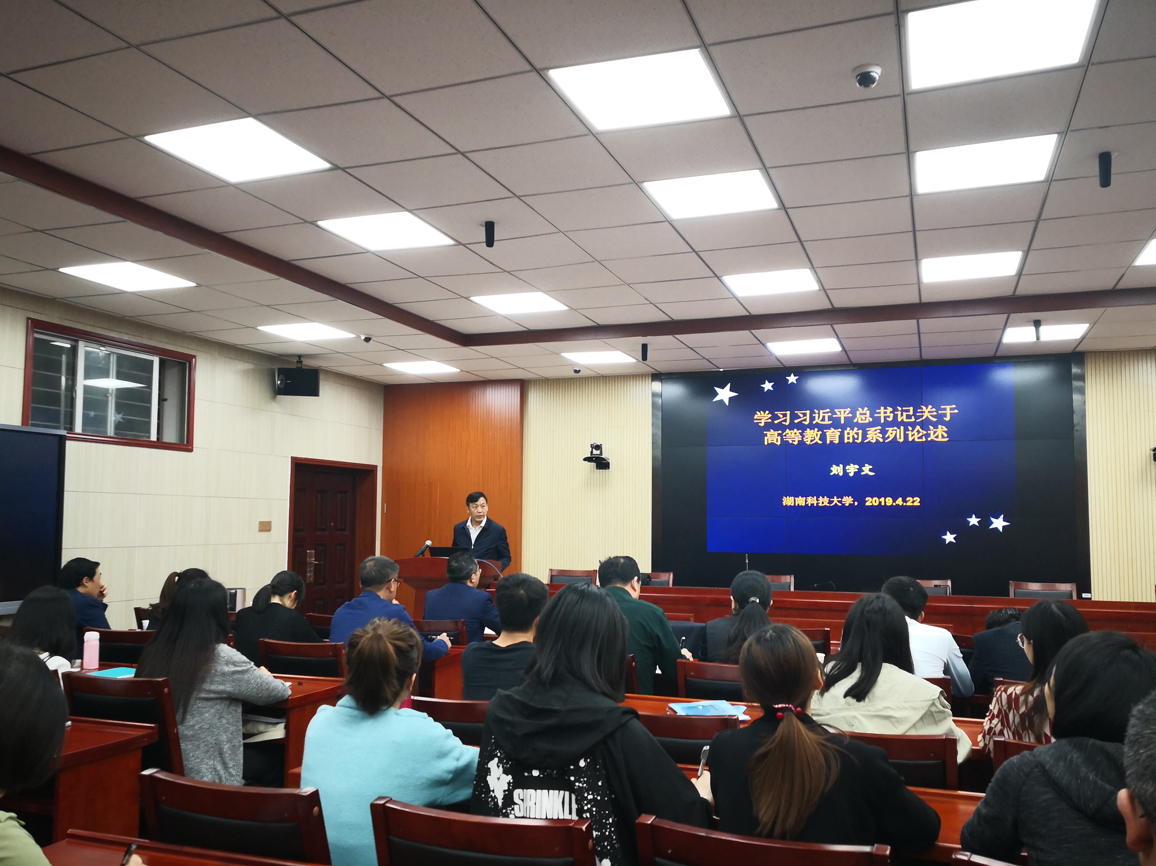 2019年4月22日下午,校纪委书记刘宇文同志在第八教学楼308学术报告厅讲授主题为“学习习近平总书记关于高等教育的系列论述”的党课。校纪委监察处、永利3044集团官网教育学教工党支部和员工党支部党员参加学习。