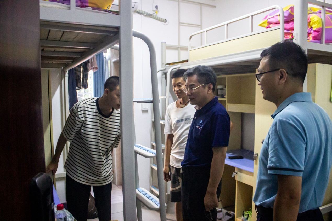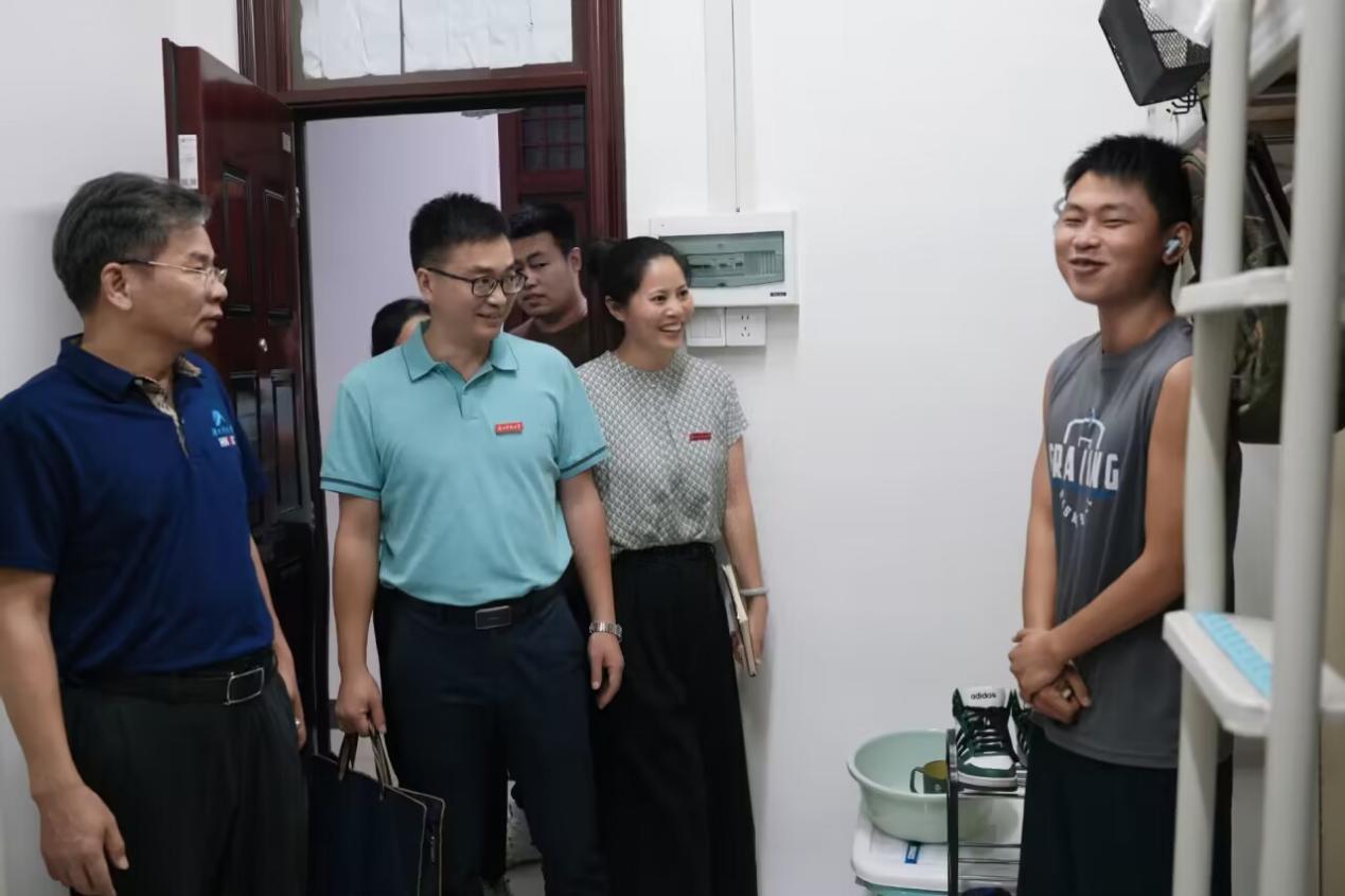 9月16日,公司党委书记李炳煌、副经理陈京军、党委副书记文红梅、研办老师、辅导员,前往五区11栋男生宿舍、八区2栋女生宿舍和昭潭书院研究生宿舍看望2023级新同学,与新生进行面对面的交流,并送上真诚关怀与殷切期望。