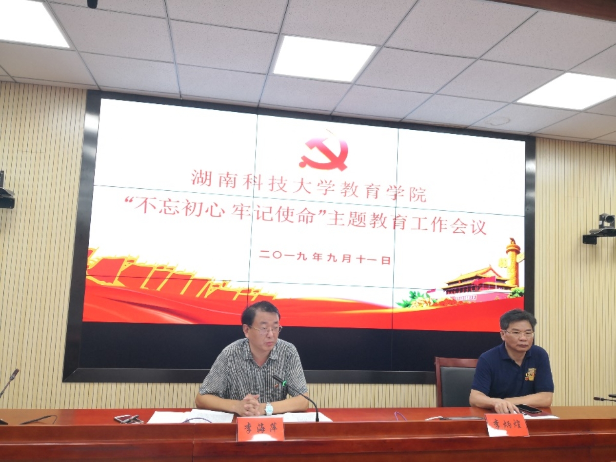 2019年9月11日晚,永利3044集团官网“不忘初心、牢记使命”主题教育工作会议在第八教学楼308会议室举行,全院全体教职工党员、本科生党员和研究生党员与会。公司党委书记李炳煌传达公司“不忘初心、牢记使命”主题教育工作会议精神,经理李海萍主持会议。